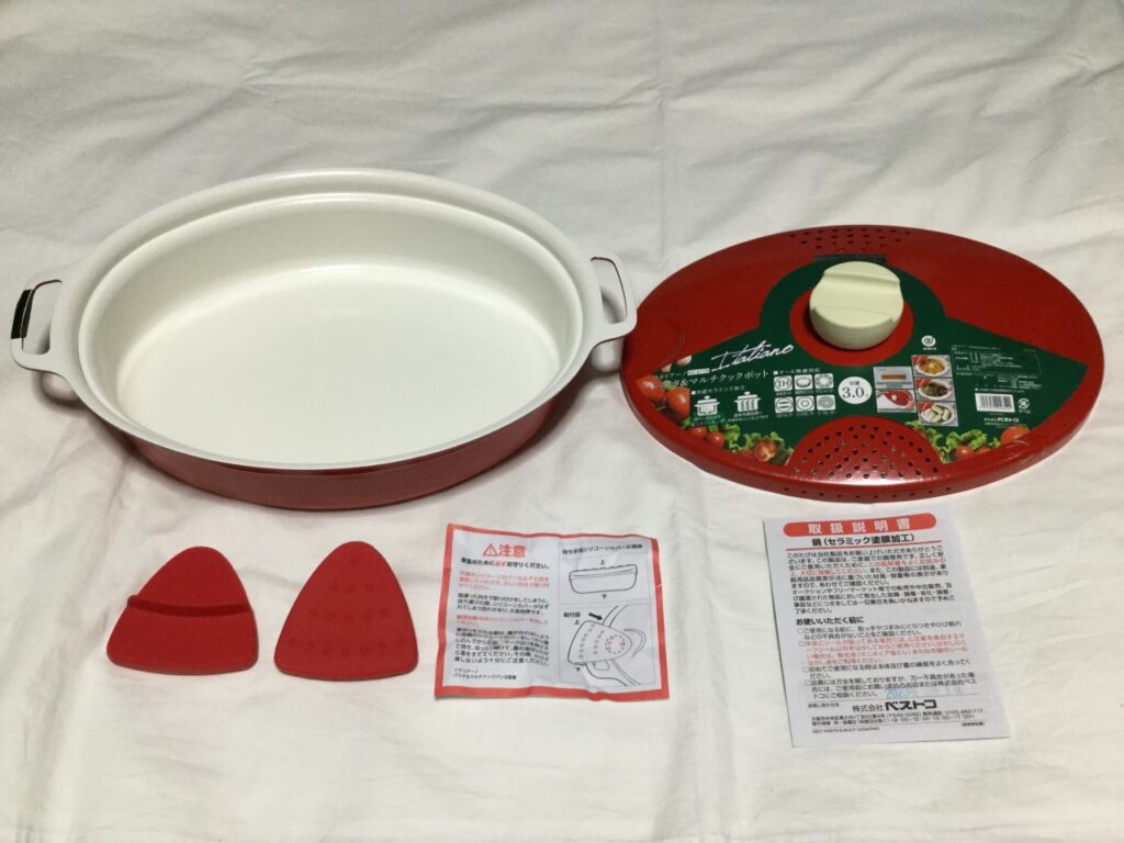 内容物-鍋、フタ、鍋つかみ、説明書等